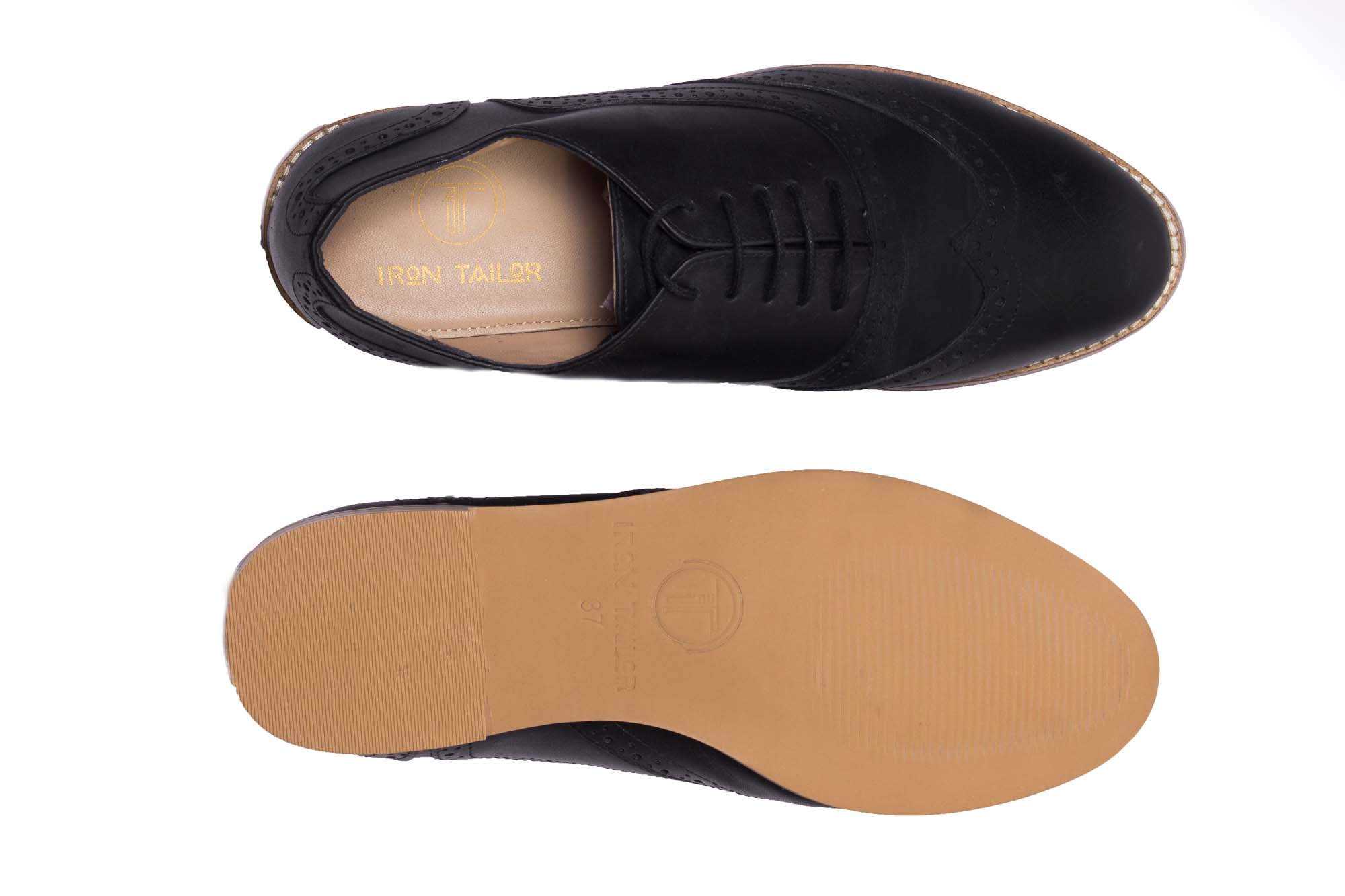 Iron Tailor Ladies Brogue Black Genuine Leather Shoe
